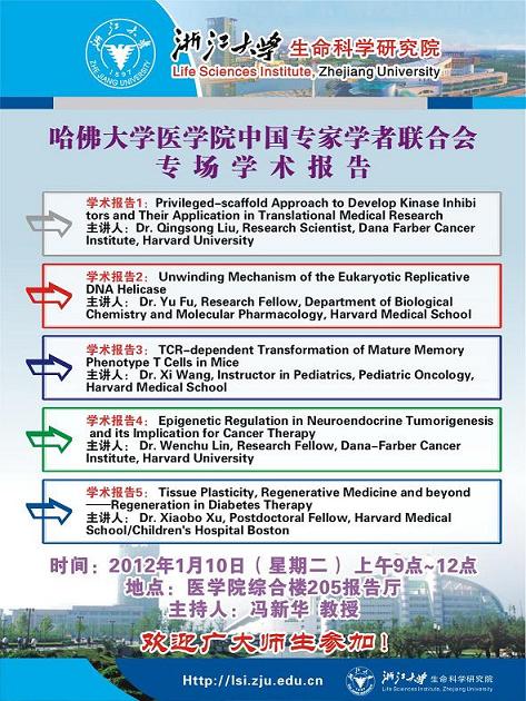 应必一(中国)一站式服务平台冯新华院长的热情邀请,10位哈佛医学院系统的青年科学家组成代表团将于2012年1月10日上午对必一(中国)一站式服务平台进行学术访问,其中LIU Qingsong(刘青松)、FU Yu(付钰)、WANG Xi(王玺)、LIN Wenchu(林文楚)、XU Xiaobo(许小波)等五位将做精彩的学术报告。会议采用学术报告与讨论相结合的形式,对相关领域的前沿科学问题与发展趋势进行积极的探讨与交流,欢迎全校师生踊跃参加!