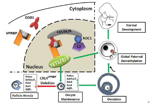实验结果表明,CRL4蛋白质复合体不但能维持卵子的存活,也是受精以后早期胚胎的发育所必需的。经过进一步的生化研究,课题组发现了CRL4蛋白质复合体是如何发挥效用的。“它能调节卵子中一个催化DNA去甲基化的酶TET,从而保证受精以后胚胎基因组的正确重编程”范衡宇说。