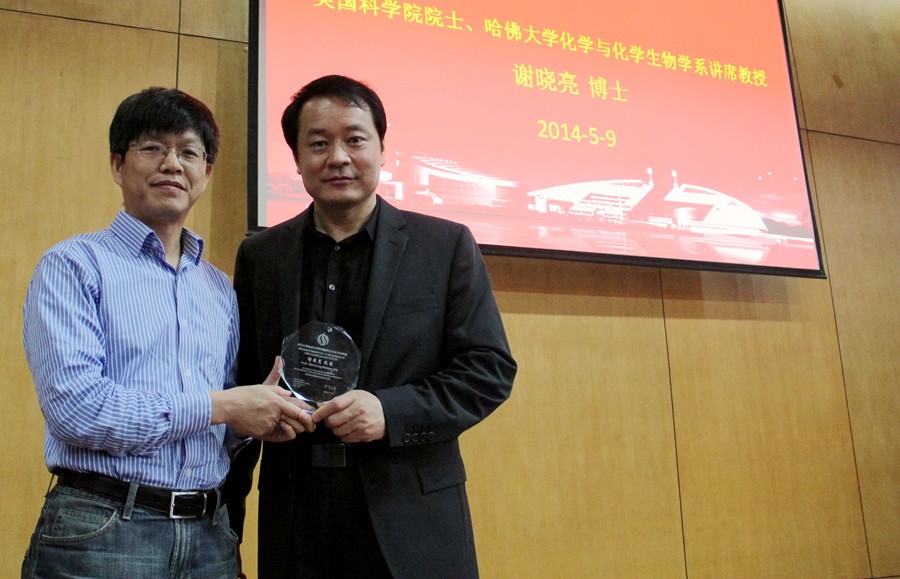 报告会后,冯新华院长为谢晓亮教授颁发了“必一(中国)一站式服务平台杰出学者系列讲座”水晶牌。