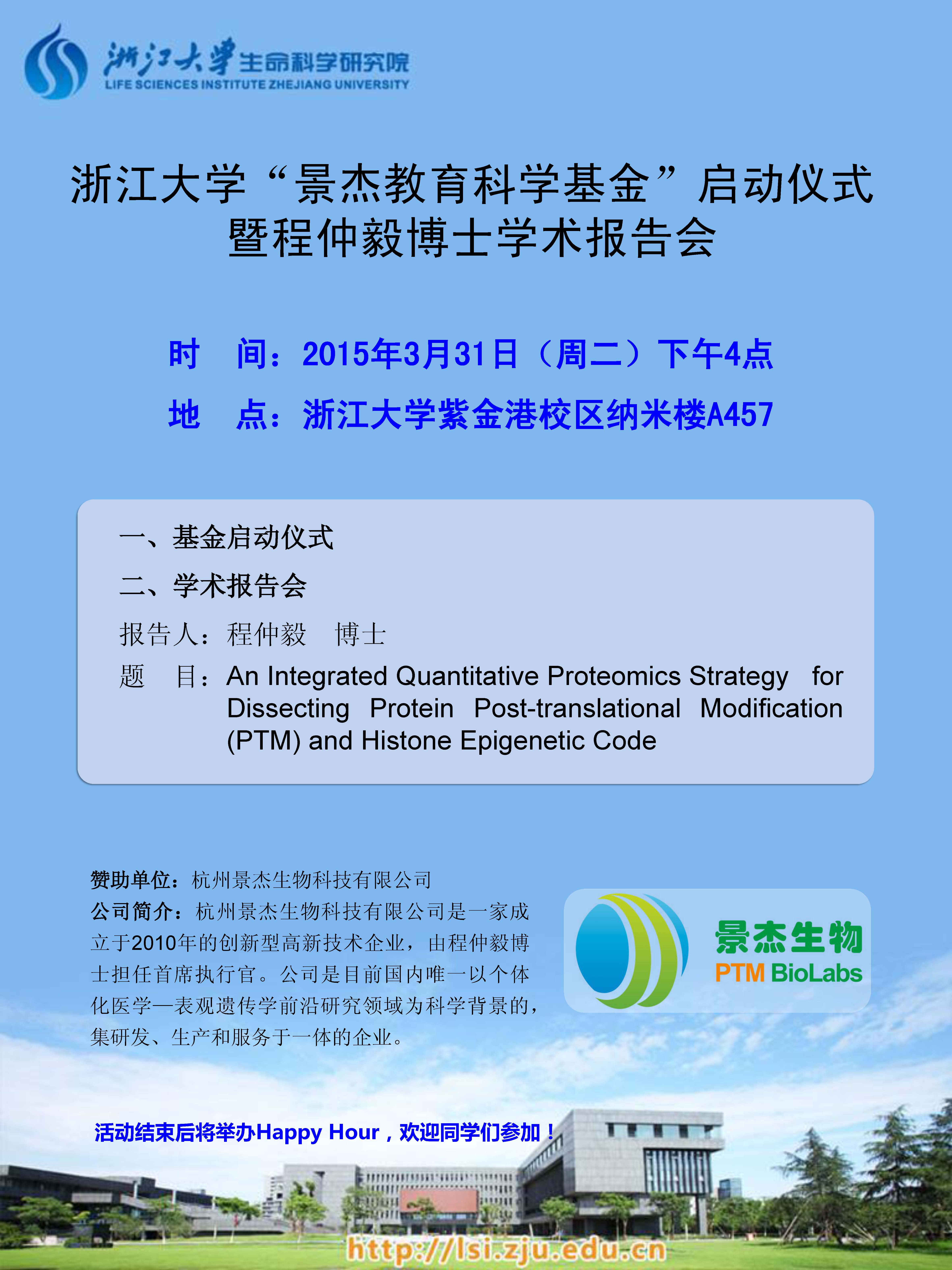 关于浙江大学“景杰教育科学基金”启动仪式暨程仲毅博士学术报告会的通知