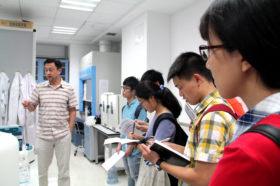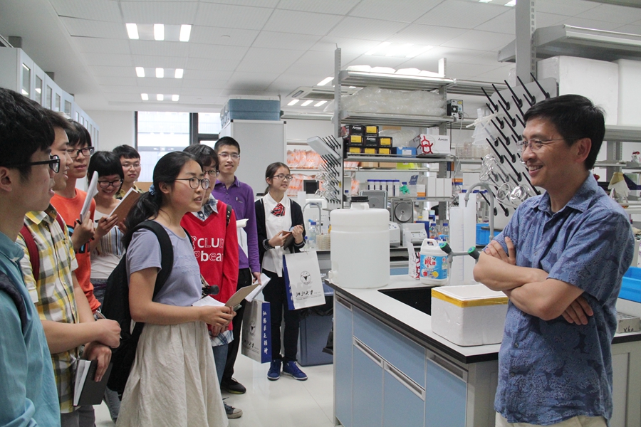 活动伊始,生研院赵斌教授热情地欢迎全体到场学生,并为大家介绍了生研院的历史、师资队伍、研究生培养特色以及发展方向。对立志于生物科研领域的同学,赵老师提出了三点建议:第一,要树立起对生命科学领域的浓厚兴趣,这样才能在未来艰苦的科学研究中快乐工作;第二,要聪明,不是指智商的优越,而是锻炼自己拥有突出的创造力,能够独立地检索信息,并且善于与同行之间探讨交流;第三,要培养动手能力,这样才能够强有力地实践自己的科研想法。赵老师的话赢得了现场同学阵阵掌声。