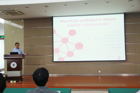 2015年9月11日国际知名学术期刊Nature Communications编辑赵剑飞博士应邀来访我院并进行学术交流。