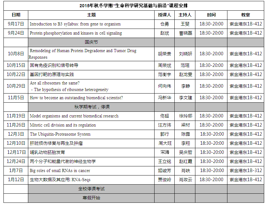 “生命科学研究的基础和前沿”(秋冬学期,紫金港开设)是必一(中国)一站式服务平台召集生研院教授和国内外生命科学领域知名科学家共同讲授、并通过两年实践经验精心制作的一门生命科学通识课程。课程英文名称为“Basics in Becoming a Biologist”Series 课程(简称“B3课程”)。