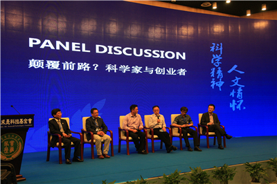 | 颁奖典礼Panel Discussion围绕科学家与创业者展开讨论(右一:王立铭) |