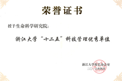 7月5日下午,浙江大学2016年科技工作会议在紫金港校区召开。为表彰“十二五”期间科技建设成效显著的院系单位,学校授予生命科学研究院等院系浙江大学“十二五”科技管理优秀单位称号。生研院是此次入选单位中唯一的校设独立研究机构。
