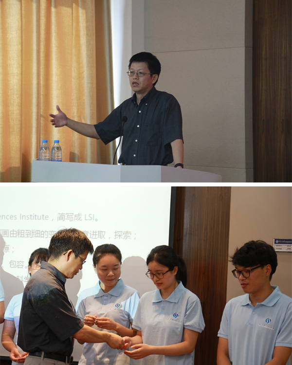 典礼伊始,冯新华院长代表学院致辞。首先,他向步入生研院来进一步求学深造的全体研究生新生表达了热烈的欢迎和诚挚的祝福。在对生研院进行简短的介绍后,冯院长指出,2016届新生正如新鲜血液,于生研院的发展和壮大是必不可少的。科研不是一个轻松的过程,冯院长鼓励大家除了要发扬刻苦精神,更重在享受科研过程,将科研作为爱好和热忱所在。他希望大家在科研学习的过程中发展两点学习素养:一是大胆质疑,学会思考,学会提出问题;二是能多参加学术交流类活动,提高自身学术素养和眼界。最后,冯院长以希望大家能够成为科研顶尖人才作结语,勉励在场的每一位研究生在今后的科研学习生活中争取卓越。之后,冯院长为全体新生佩戴院徽。