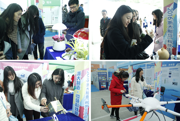 本次展览是由浙江大学工会、党委宣传部、科研院、工研院、农推中心联合发起和组织的,共展出32项科技成果,从肥胖干预食品到超韧性水泥,从全自动植物生长机到隐型无人机,涵盖了多个学科领域,是“十二五”期间浙大师生研发的与人民生活紧密相关的代表性科技成果,令参观党员惊奇不已。