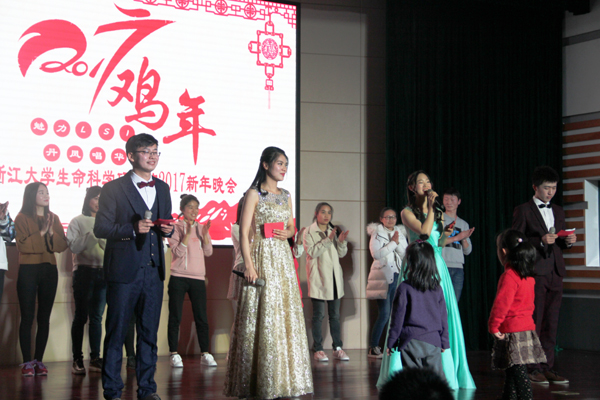 晚会伊始,一场别开生面的开场舞《We are all in together》渲染了欢快的节日气氛。冯新华院长发表新年致辞,感谢所有人这一年里的辛勤工作,并向全体师生送去新春祝福。随后,仓勇教授抽取了本次晚会的特等奖,并为大家带来精彩的歌曲演唱《Bridge over troubled water》,晚会正式拉开了序幕。在接下来的两个小时里,街舞、小品、古典芭蕾、以及吉他弹唱等节目依次登场,异彩纷呈,全体师生徜徉其中,享受着这场视听盛宴。