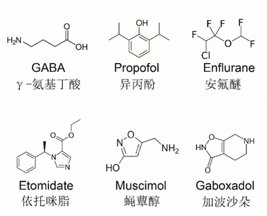 GABA是中枢神经系统中介导抑制性突触传递的一种主要的神经递质。GABA激活GABAA受体打开氯离子选择性孔道,引起神经元超极化从而抑制神经信号传递,因此对于控制神经系统的兴奋性至关重要。GABAA受体功能失调会导致许多神经系统疾病的发生,如癫痫和精神障碍。GABAA受体的重要性更体现在它是许多临床一线药物的作用靶点。此外,上百个不同结构的重要先导化合物通过激活、抑制或调控GABAA受体发挥作用,显示了巨大的应用潜力。比如,广谱性抗抑郁药苯二氮卓类药物,是通过加强GABA对GABAA受体的作用,从而中度抑制神经元敏感性,来消除患者的焦虑。而许多麻醉剂,如异丙酚(Propofol)、安氟醚(Enflurane)、依托咪酯(Etomidate)等,能够直接诱导GABAA受体的开放从而引起更强的抑制作用,导致全身麻醉。最神奇的是致幻药物,如一种遍布全球,表面鲜红并有白、黄色颗粒状鳞片的叫毒蝇伞(AmanitaMuscaria)的蘑菇,一般成人食用一朵之后便会引起幻觉和感到灵魂出窍。毒蝇伞的幻觉毒性效果主要来自于蝇蕈醇(Muscimol),蝇蕈醇是GABAA受体的激动剂,通过结合在GABAA受体的GABA结合位点而起作用。为什么一个结合在GABA位点的药物能够致幻,至今仍然是一个谜。更有意思的是,1977年,丹麦Lundbeck公司化学家根据蝇蕈醇的化学结构合成了一系列类似物,其中一个化合物,加波沙朵(Gaboxadol),同样结合在GABAA受体的GABA结合位点,然而临床发现具有催眠作用,同时不产生依赖性,不会被滥用。2016年,Lundbeck公司更是启动了加波沙朵作为Angelman综合征(Angelmansyndrome)和脆性X染色体综合征(FragileX syndrome),两种罕见神经系统疾病的二期临床实验。GABAA受体结构的解析,为未来进一步开展药物和GABAA受体之间的相互作用研究,开发更有效、更安全的药物,打下了坚实的基础。
