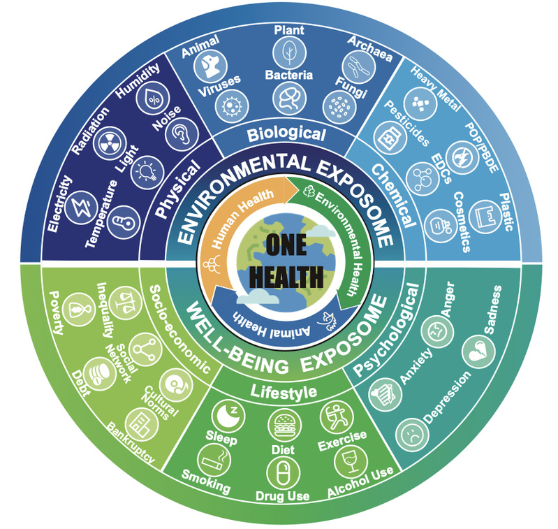 宏观和个体环境暴露组(exposome) 的生物和化学组分的多样性、以及其在时间空间上的动态变化(spatiotemporal dynamics);