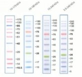 注意点:不同大小分子量的蛋白电泳的时间不同,比如分子量小的目的蛋白无需样品跑到绿线处,只要Marker在该目的蛋白预计分子量处跑开即可。而目的蛋白分子量较大的,可以继续往下跑,让大分子量的蛋白可以分的更开