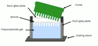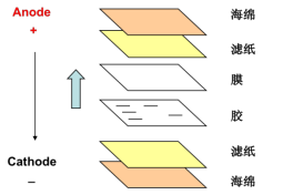 电泳:带电粒子在电场作用下,向着与其电荷相反的电极移动的现象。Western Blot常用聚丙烯酰胺凝胶电泳(PAGE),具有无电渗作用,样品用量少(1-100μg),分辨率高,凝胶机械强度大(韧性作用好),重复性好以及可以调节单体浓度或单体与交联剂的比例而得到孔径不同的凝胶(根据聚丙烯酰胺的量配成6%,8%,10%,12%,15%的凝胶)等优点。注:不同百分比的凝胶最佳分离蛋白的分子量大小不同,根据蛋白Marker的指示区分不同分子量的蛋白在凝胶上的位置。