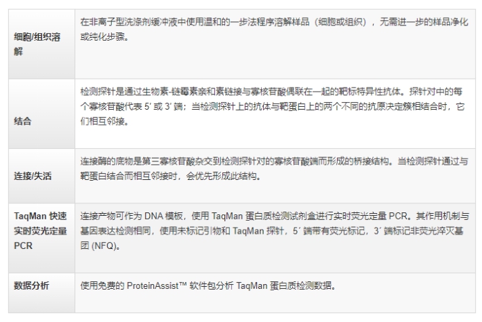 如果存在目标序列,探针便会在其中一个引物结合位点的下游发生退火,并随着引物的延伸通过Taq DNA 聚合酶的 5’核酸酶活性,完成切除。