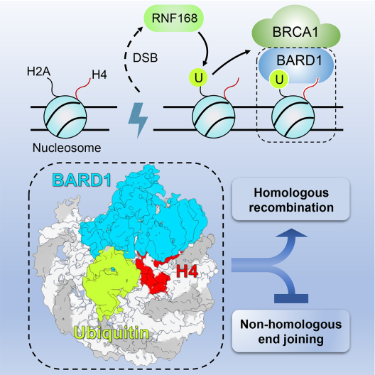 图:BRCA1-BARD1复合物识别泛素化的核小体,促进同源重组修复