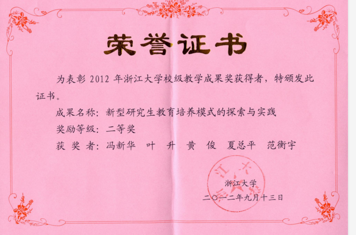 2012浙江大学教学成果奖证明.png