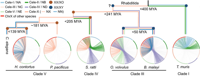 图2 线虫动物门代表物种的性染色体组成