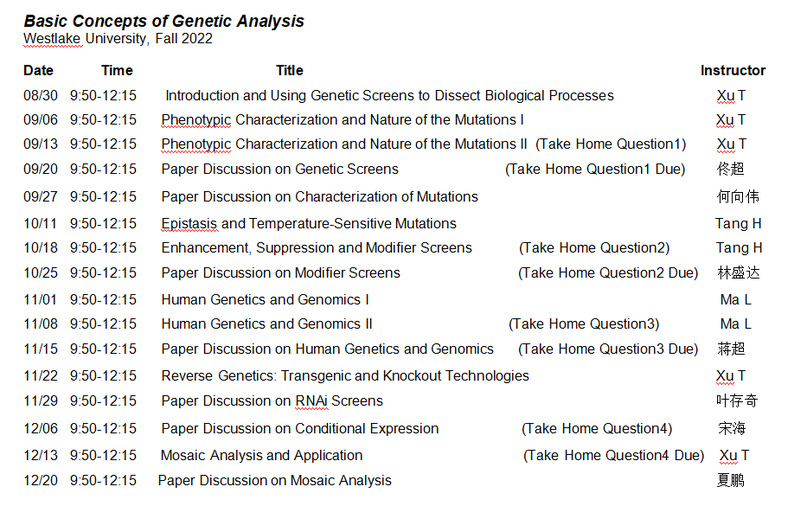 2022-2023年“遗传学分析”课程安排