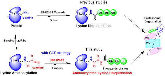 该论文提供了利用遗传密码展技术发现和研究新型翻译后修饰的思路和流程,首次发现一类全新的氨基酰化赖氨酸的泛素化修饰,鉴定了赖氨酸氨基酰化修饰和泛素化修饰的相互作用规律丰富了人们对泛素化修饰的类型、机制和功能的认识,并拓展了蛋白质翻译后修饰研究边界