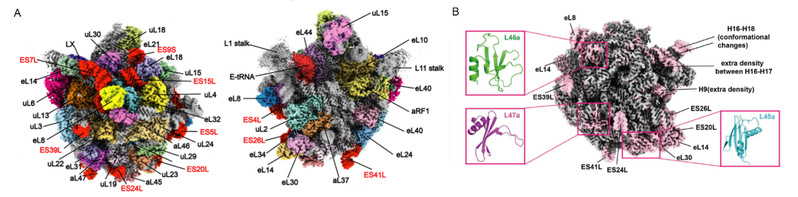 12.7 Å 分辨率的50S核糖体结构揭示的新的核糖体蛋白及rRNA扩展片段。