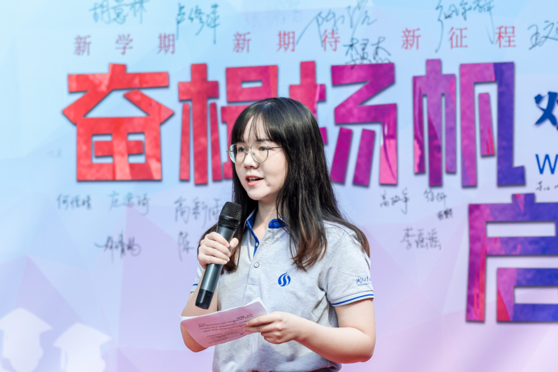 新生代表卢修萍表达了自己对攻读博士学位的期望和决心,展示了对博士生涯的热情和追求,鼓励同学们勇往直前,坚定信念,追求梦想,激励同学们一起积极面对挑战,迎接美好未来。