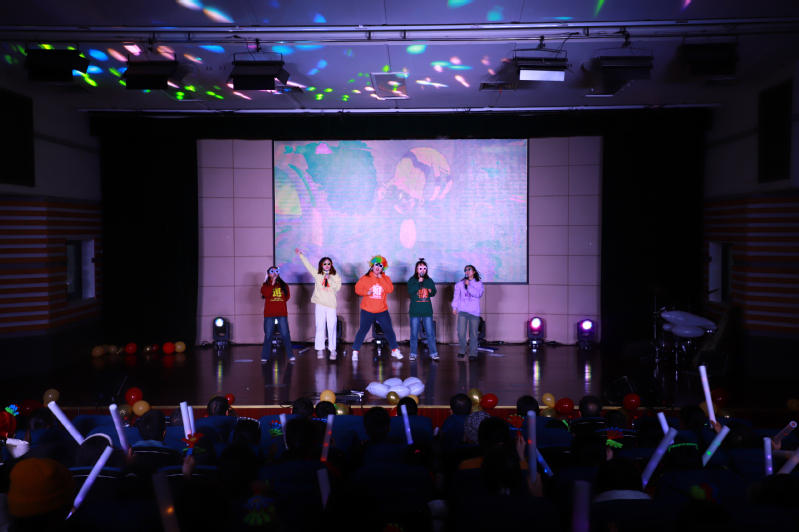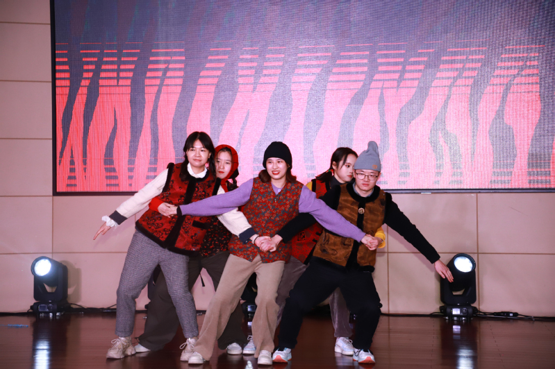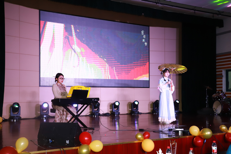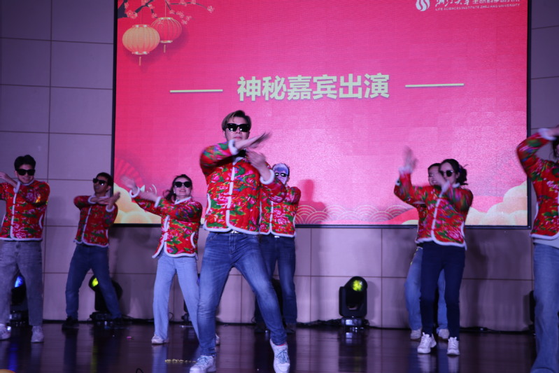 张澜馨、宋楚睿同学的精彩舞蹈《Pink Venom》动感十足,展现了律动与魅力,同时也引来了台下观众的热烈应援;刘哲伶、张烜溥、朱子叶、纪琳琳的歌曲《一笑倾城》活泼灵动,带来别样的视听体验。李兰丁同学的歌曲《如愿》娓娓道来,是对新年及未来的美好祝愿及希冀。由教职工组成的神秘嘉宾带来了有趣诙谐的舞蹈,将晚会欢乐的气氛推向最高点。