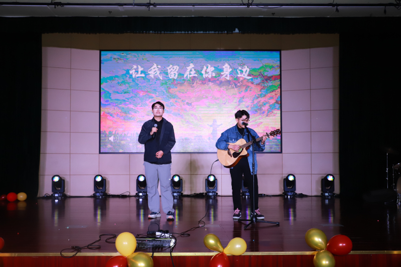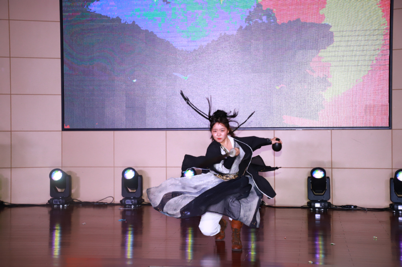 舞蹈表演《ZOO》,动感又热烈,将表演者的热情传递给在场所有观众。朱叔楷、周航旭带来的吉他弹唱《让我留在你身边》、《温柔》悠扬的歌声与吉他的旋律相得益彰,交相辉映,共同谱写了一场视听盛宴。李致融的歌曲《假如爱有天意》深沉亲切,富有感染力,令人沉醉其中。一支《丝路幻影》将观众们的思绪从爱的天涯带至西域,异域风情在冯芊、孙娜两位同学的演绎下更显得别样而又富有魅力,黄沙漫漫,古往今来,为我们展开了一幅壮阔的西域画卷。