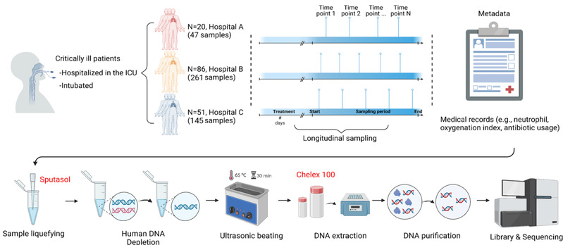 下呼吸道感染是全球主要健康问题之一, 每年导致至少300万人死亡。ICU患者罹患医院获得性下呼吸道感染的风险平均增加3-10倍,显著增加了病死率。ICU患者下呼吸道微生物组具有重要作用,有望成为新的治疗切入点,但目前对其认识十分有限。在进行相关研究时,实验过程中面临诸多的挑战,例如高丰度的宿主DNA污染问题、微生物生物量相对较低的情况,以及连续收集下呼吸道样本所面临的困难。同时,目前在ICU患者群体中,关于下呼吸道微生物组的动态演变、与宿主的相互作用,以及病原菌在临床环境中的进化适应性等方面的研究仍十分匮乏。