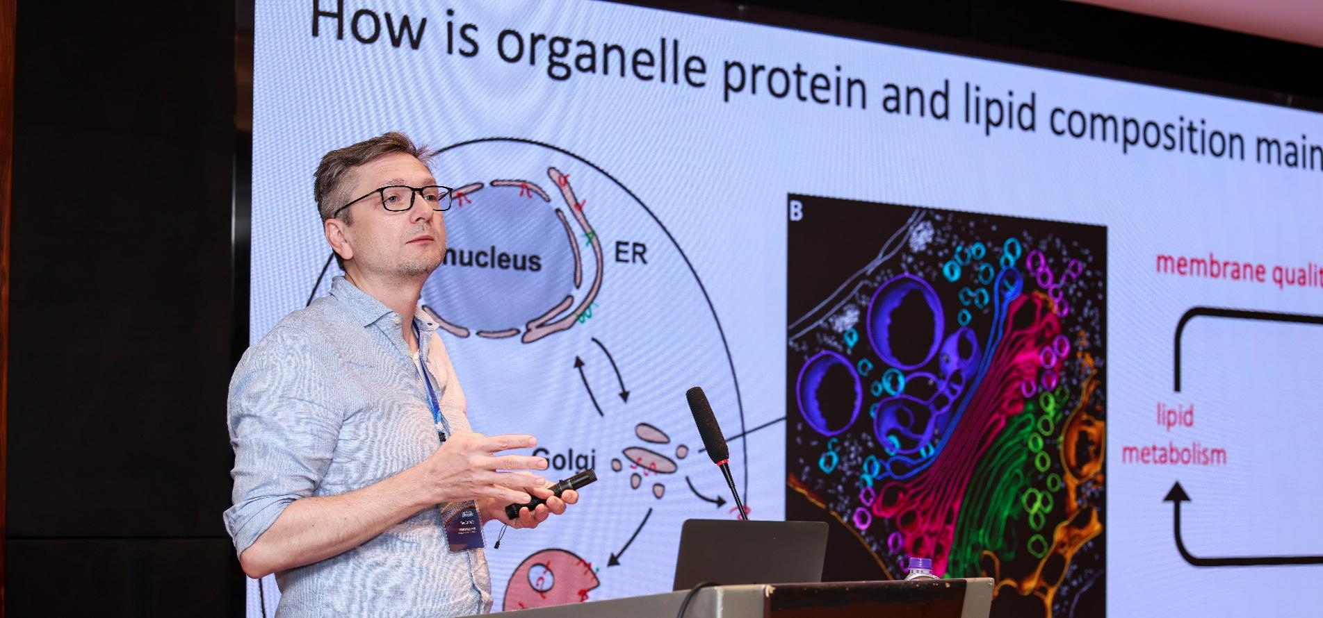 因斯布鲁克医科大学David Teis教授以“Lipid Regulation by a Golgi Quality Control Network”为题,利用酿酒酵母为模型,阐明了高尔基体质量控制依赖于Dsc泛素连接酶复合体,而Dsc底物的积累依赖于含有较短且不对称酰基链的甘油磷脂的丰度升高。这为理解膜脂特征与膜蛋白互作的关系提供了新的视角。