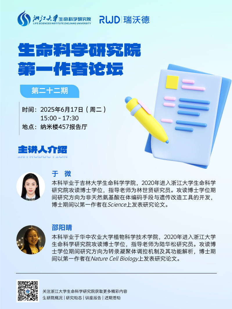 生命科学研究院第一作者论坛第二十二期:于微、邵阳晴
