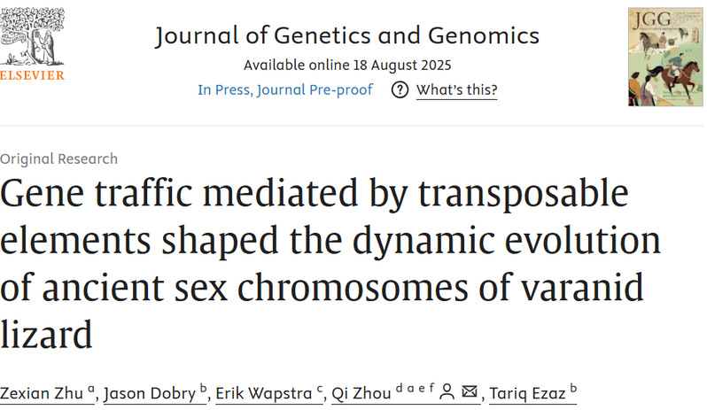 2025年8月18日周琦实验室在JGG发文揭示转座子参与巨蜥性染色体演化的遗传机制