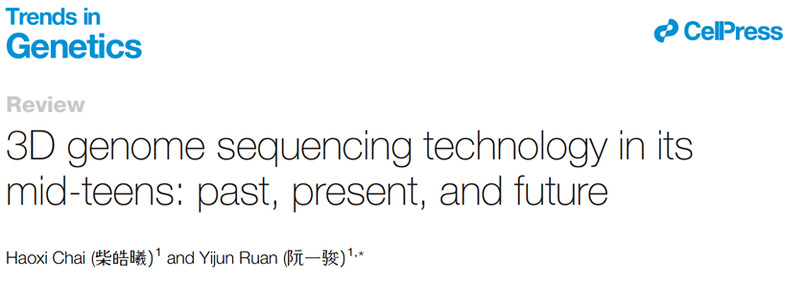 2025年8月22日,阮一骏研究员与柴皓曦副研究员受邀在Trends in Genetics杂志上发表题为“3D genome sequencing technology in its mid-teens: past, present, and future”的综述论文。该文章全面系统地回顾了解析三维基因组结构的DNA高通量测序技术以及数据分析工具的发展历程,概述了该领域的最新进展,并展望了未来的发展方向。