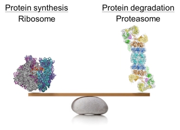 蛋白质的合成与降解共同调节细胞中的蛋白稳态(proteostasis) ——这是所有生命的基础。在这一过程中,蛋白质的降解与其合成有着同等重要的意义。从酵母到人,所有真核生物细胞中绝大部分蛋白质的降解都依赖于泛素-蛋白酶体系统(the Ubiquitin-Proteasome System, UPS)。作为这一系统的核心,蛋白酶体对于几乎所有生物学过程都不可或缺——从细胞分裂到DNA修复,从基因表达到细胞垃圾的清除,从信号转导到细胞凋亡。可以说,任何生命活动只要有蛋白质参与,基本都依赖于蛋白酶体发挥功能。