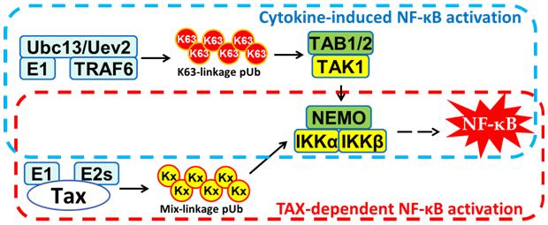 Zongping Xia Lab, PLoS Pathogens: HTLV-1 Tax Functions as a Ubiquitin E3 Ligase for Direct IKK Activation via Synthesis of Mixed-Linkage Polyubiquitin Chains