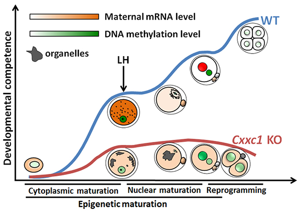 Several research groups have demonstrated that the amount of H3K4me3 remarkably increases during oocyte maturation, and H3K4me3 is abundantly deposited at numerous broad regions on chromatin of mature oocytes, but the functional significance of these phenomena remain unclear.A recent study by Fan laboratory (Yu et al, Cell Reports 2017) indicated that the CFP1-SETD1 complexis the predominant H3K4 methyltransferases in most species and cell types including mouse oocytes.Conditional knockouts of Cxxc1 (the gene coding for CFP1) or Setd1b in oocytes caused oocyte maturation defects and female infertility, but the mechanism was investigated insufficiently.
