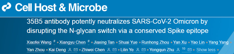Yongqun Zhu's lab published a paper in Cell Host & Microbe revealing the neutralization mechanism of the human monoclonal antibody 35B5 aginst SARS-CoV-2 Omicron
