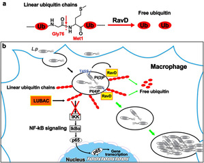 Yongqun Zhu laboratory, Nature Microbiology: A bacterial effector deubiquitinase specifically hydrolyses linear ubiquitin chains to inhibit host inflammatory signalling