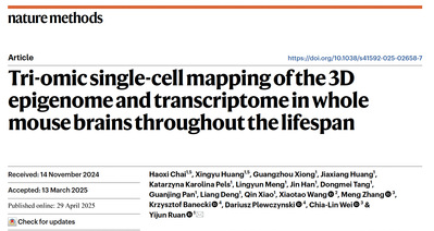 Dr. Yijun Ruan 's laboratory published an article in Nature Methods reporting a novel single-cell multi-omic method for ...