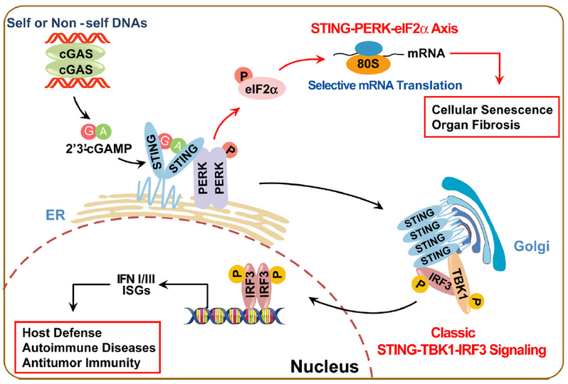 cGAS-STING-PERK-eIF2a信号通路的鉴定及生理功能