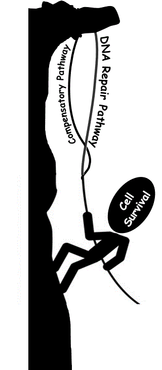 每一个DNA修复通路的遗传缺陷会导致特异的疾病表型,以及细胞对特定类型DNA损伤剂的超敏反应。然而,大部分 DNA修复功能的缺陷在没有外源损伤的条件下不导致细胞死亡。尽管细胞内源性DNA损伤在不断发生,整体遗传性缺陷导致的范可尼贫血症、着色性干皮病、碱基错配修复综合征患者大部分能存活至青少年或成年期。这表明细胞中存在代偿机制 (Compensatory Pathways),可以阻止DNA修复缺陷细胞积累大量的DNA损伤而致死。 我们通过全基因组合成致死的筛选方法在DNA修复缺陷细胞中找到并分析这些补偿机制。识别各种DNA修复缺陷的补偿机制有助于建立新型的癌症治疗靶点,尤其是由DNA损伤修复缺陷引发的肿瘤.
