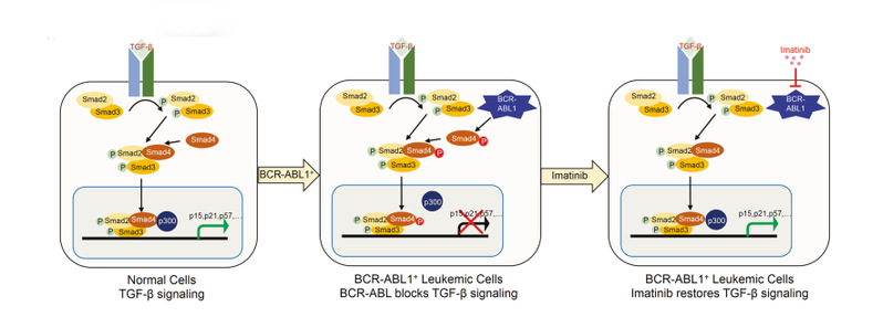 2.Imatinib blocks tyrosine phosphorylation of Smad4 and restores TGF-β growth-suppressive signaling in BCR-ABL1-positive leukemia.